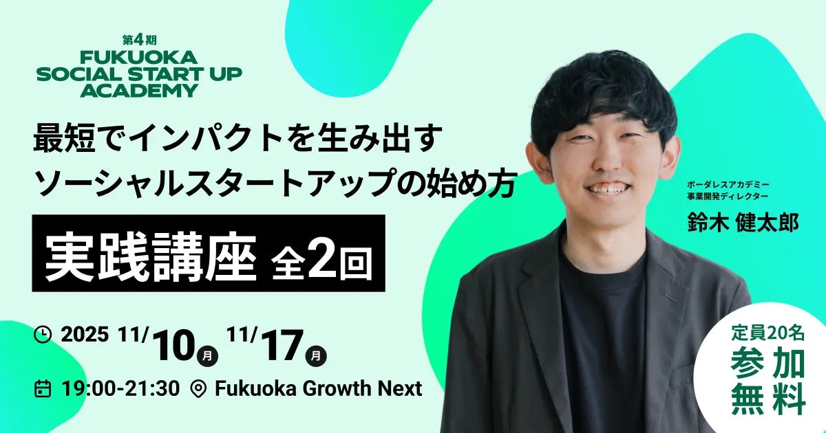 2025年10月24日(金)開講。株式会社ボーダレス・ジャパンとFukuoka Growth Nextがタッグを組み、社会課題解決に挑戦する起業家をサポート