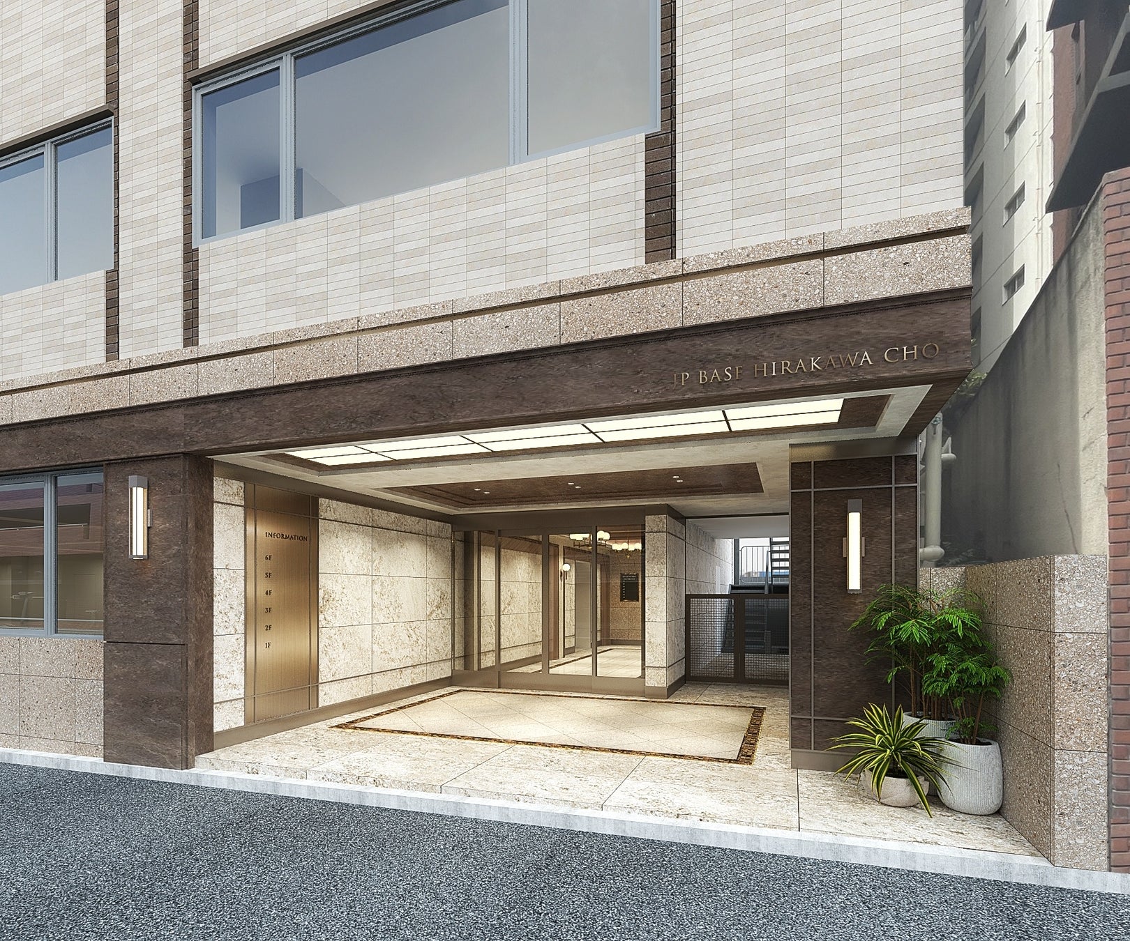 エントランスでは平河町の立地に相応しく、スタイリッシュな印象の空間に柔らかい照明の光が格式高い雰囲気をより演出しています。