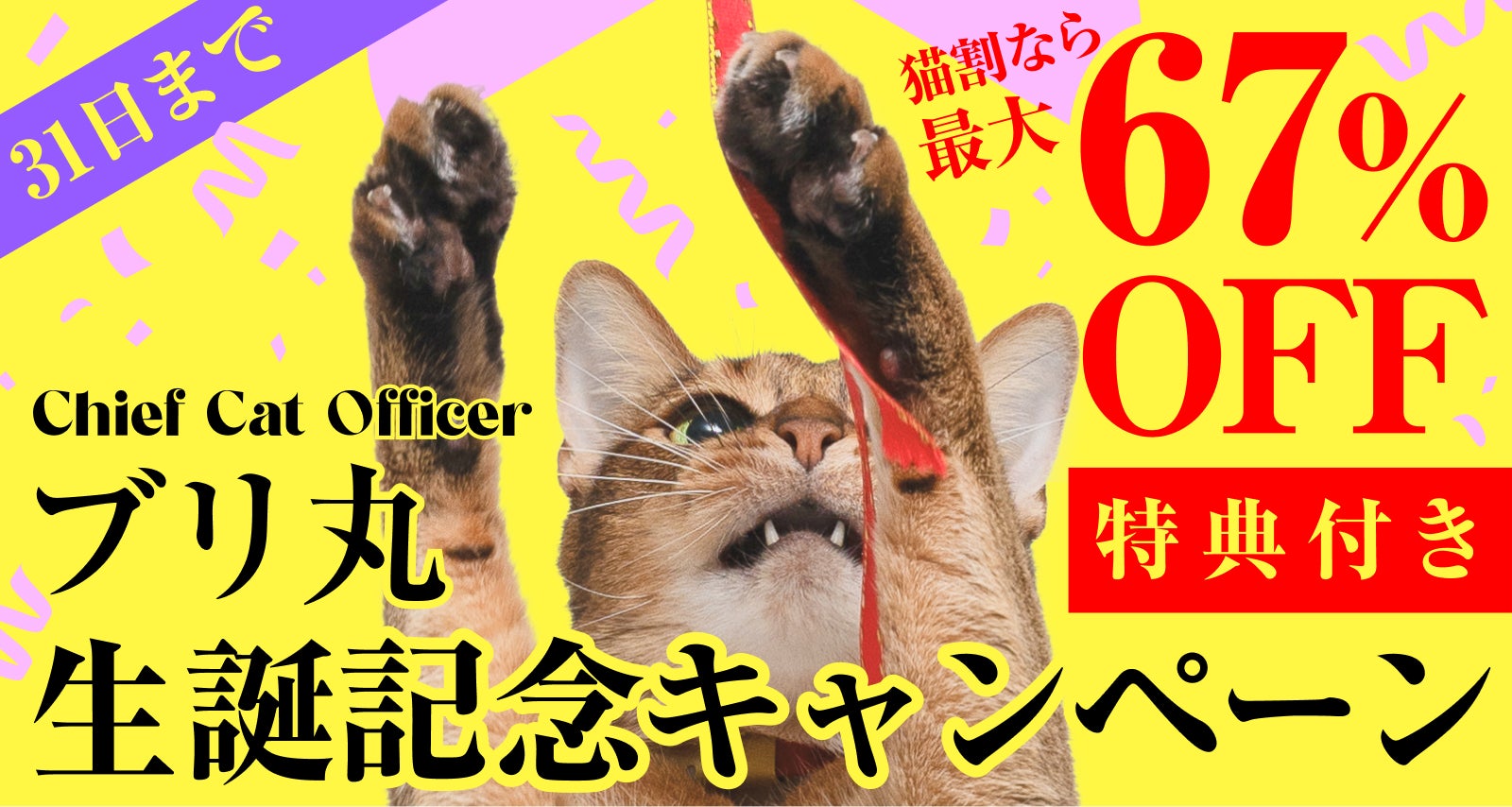 新しい猫様のご登録で初期費用を抑えられる「猫割」価格に、さらにCCOブリ丸お誕生日を記念して生誕記念キャンペーンが本日からスタート!