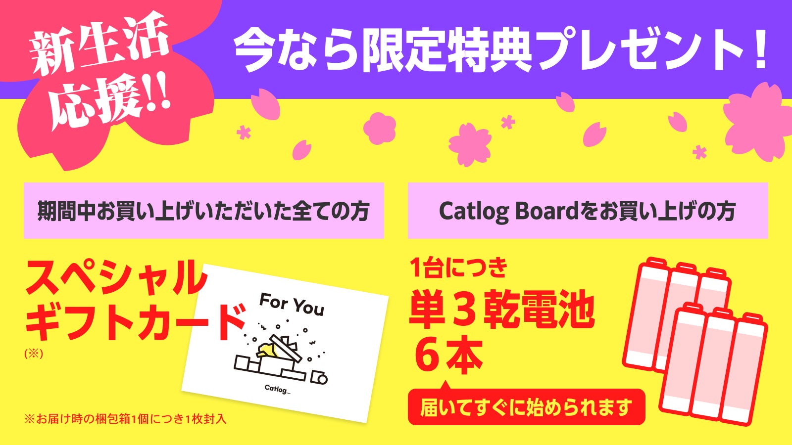 新生活応援!今ならCatlog Boardに電池も同梱&メッセージカードプレゼント