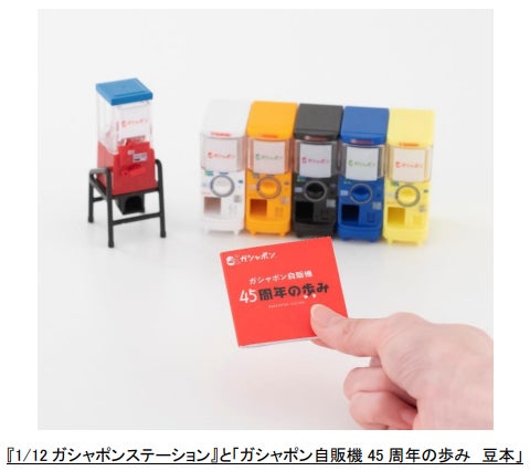 また、4 月 29 日(金・祝)から先行発売 9 店舗にて、プレゼントキャンペーンも実施します。『1/12 ガシャポンス テーション』を 3 個ご購入いただいた方に、1977(昭和 52)年から現在までのガシャポン自販機の進化を約 5cm の 小さな本にまとめた「ガシャポン自販機 45 周年の歩み 豆本」(非売品、数量限定)をプレゼントします。対象店舗 スタッフまで、ご購入いただいた『1/12 ガシャポンステーション』商品とミニブック(説明書)それぞれ 3 点をお持ちく ださい。ミニブックはプレゼントをお渡しした後、印をつけて返却します。プレゼントキャンペーンは準備数がなくな り次第、終了となります。