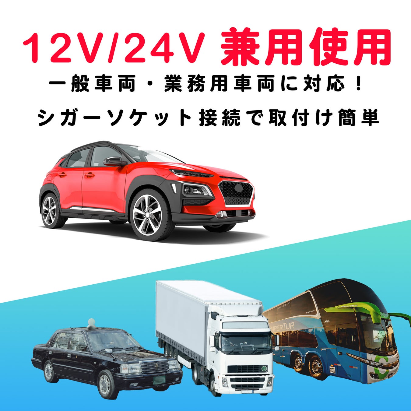 ◎一般的な乗用車の12Vだけでなく24Vにも対応。トラックやバスなど大型車でもご使用可能です。