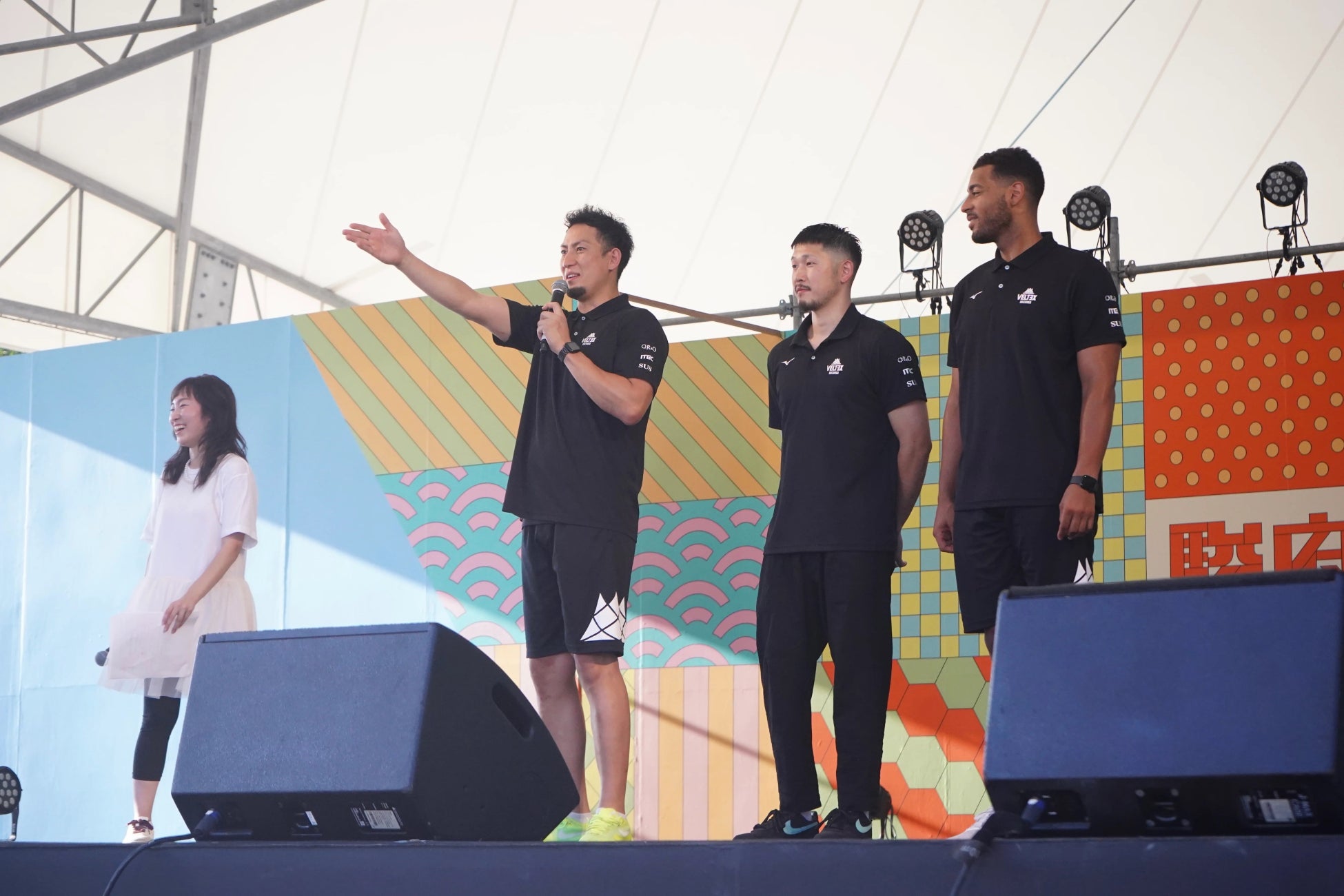 8月17日(土)、駿府城公園にて開催された「駿府城夏まつり 2024」に、ベルテックス静岡から橋本尚明選手、バローンマーテル選手、加納誠也選手が出演しました。