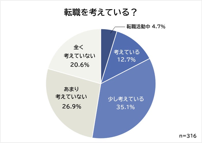 最後に「転職を考えているか」を聞いたところ、結果は以下のようになりました。