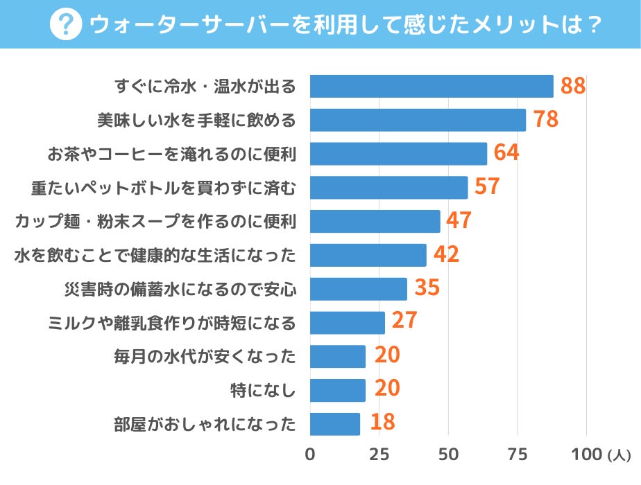 ・利用したメリットで最も多かったのは、「すぐに冷水・温水を使える」こと