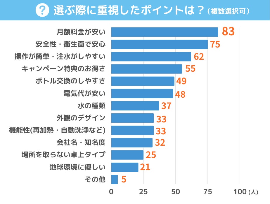 ■ウォーターサーバーを選ぶ際は、月額料金の安さが重視されている