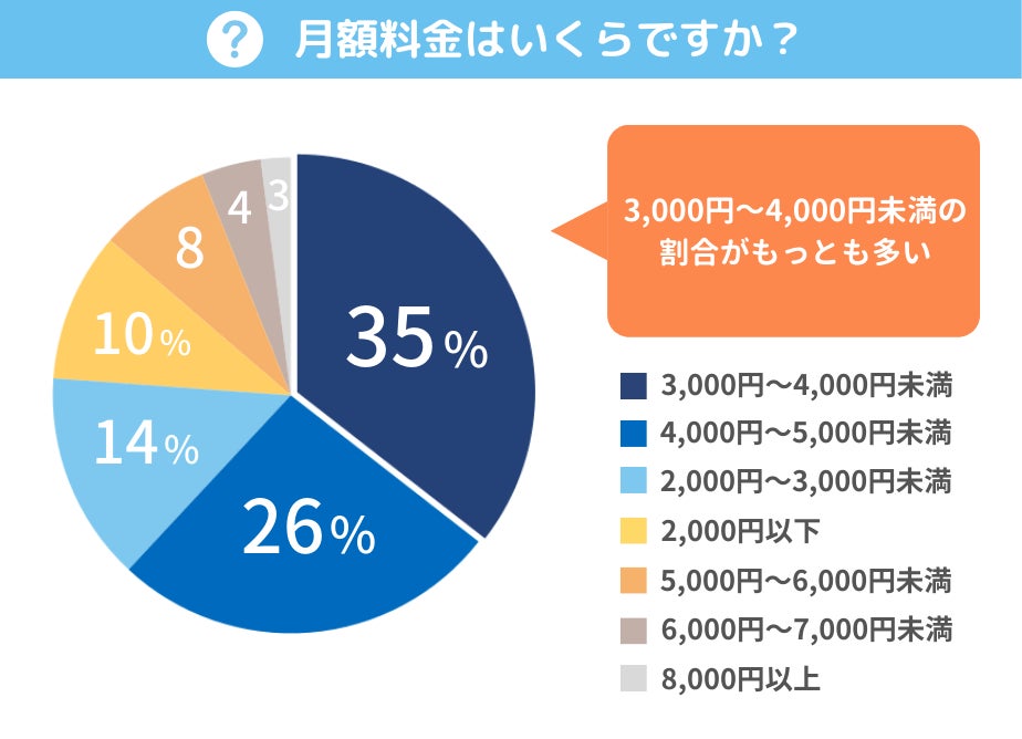 ■ウォーターサーバーにかかる月額料金は、3,000円~4,000円未満が最も多い