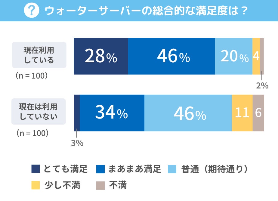 ・現利用者と過去利用者のどちらも、ウォーターサーバーの総合的な満足度は高い傾向にある