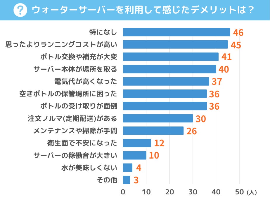 ■ウォーターサーバーを利用して感じたデメリットは「特になし」と回答した人の割合が最も多い
