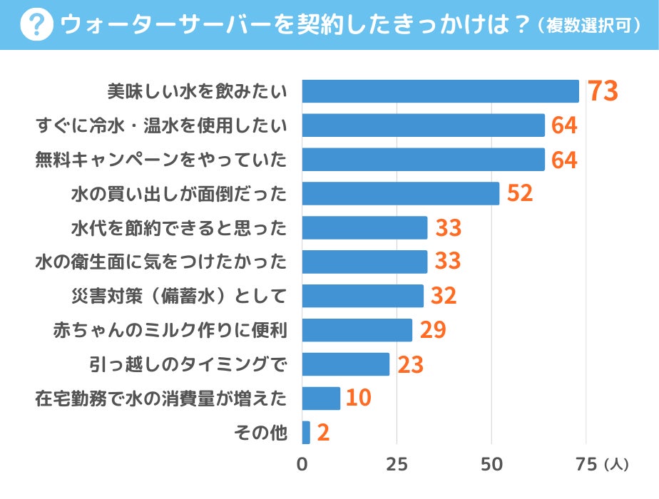 ■ウォーターサーバーを利用したきっかけで最も多かったのは、「美味しい水を飲みたいから」