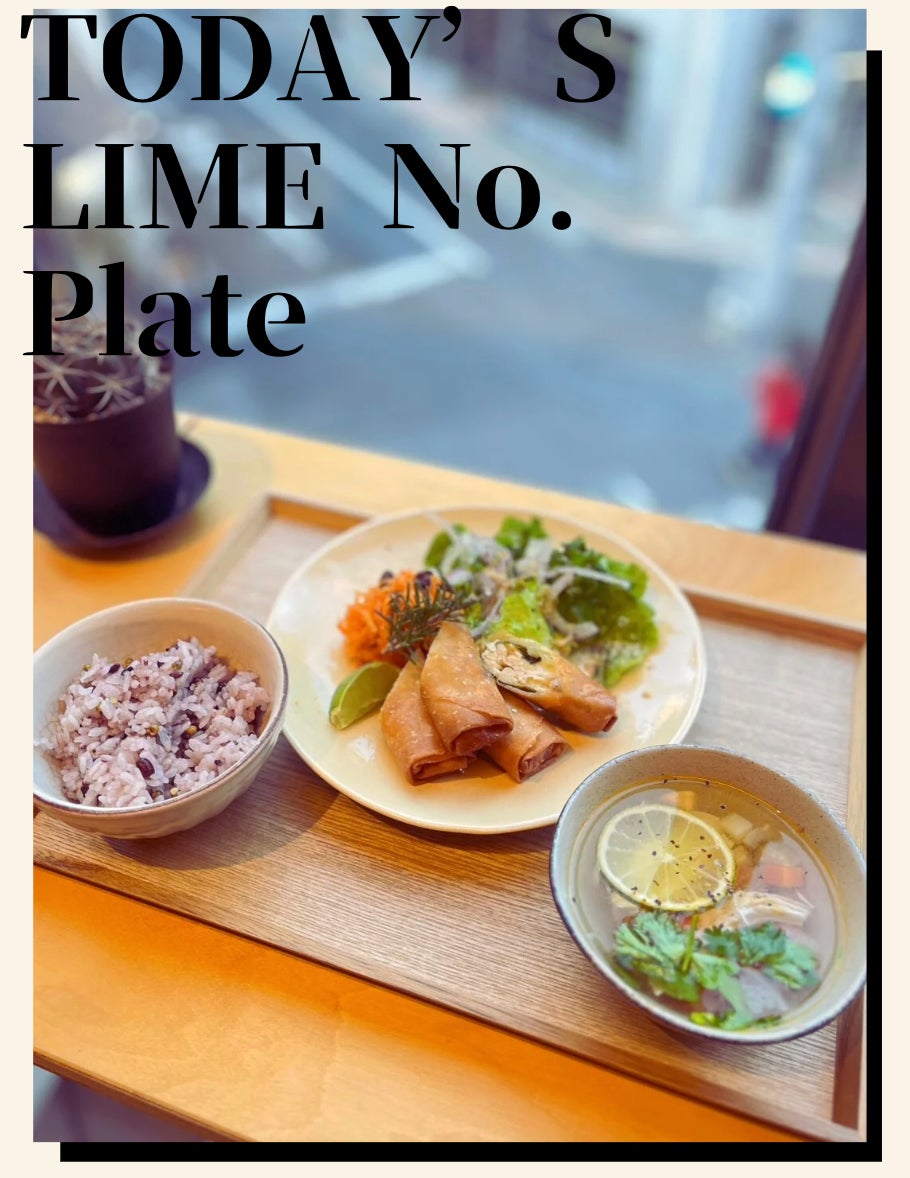 本日のライムプレート(メインとライムスープ、副菜、サラダ等)