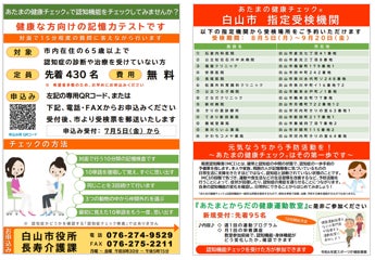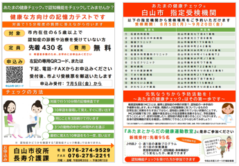 令和6年度「あたまとからだの健康増進事業」白山市モデル / あたまの健康チェック®の受付枠、検査拠点を拡大し市内全域をカバー