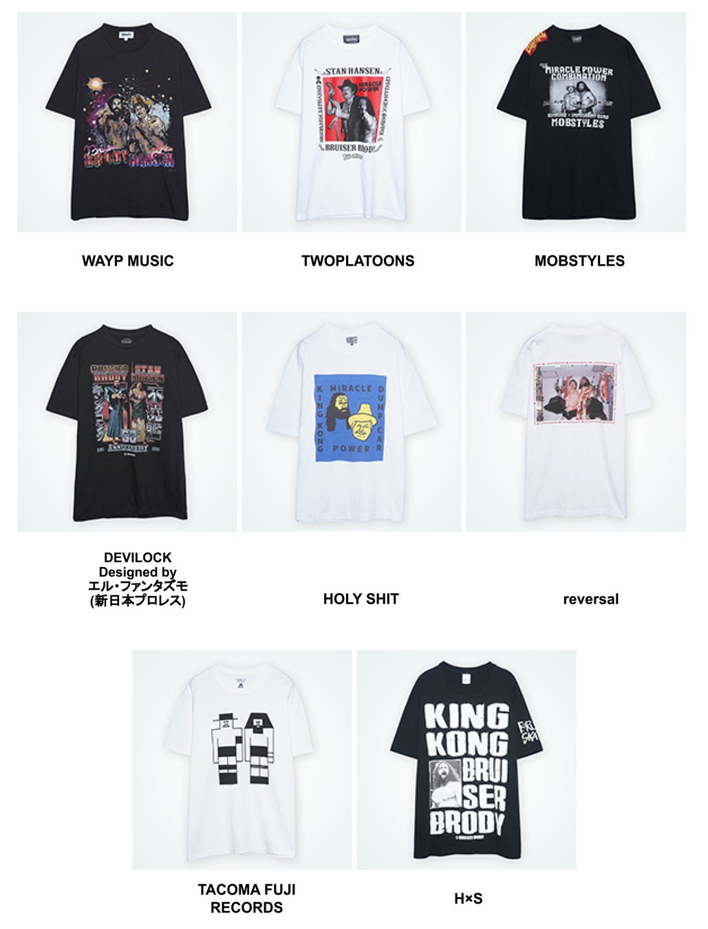 WAYP MUSIC、TWOPLATOONS、MOBSTYLES、DEVILOCK、HOLY SHIT、reversal、TACOMA FUJI RECORDS、HxS、週刊プロレス、H.J.T.Production、ジュウロクホウイ(16directions)