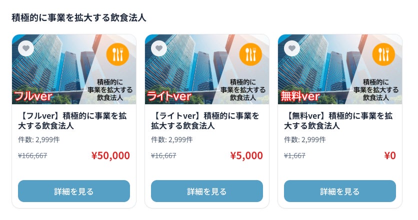 「直近1年以内に開業実績を持つ中堅飲食店運営会社(3〜10店舗規模)」のデータパッケージ(2,999件)を新たに追加いたしました。