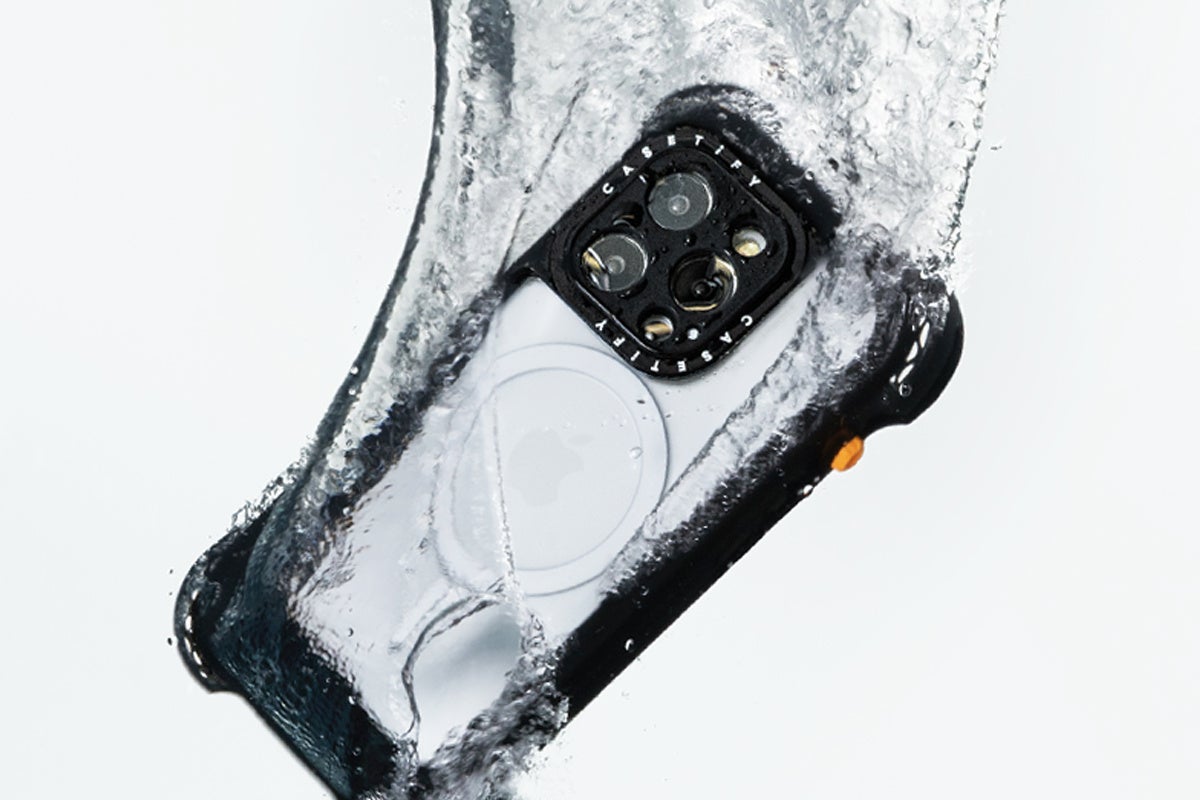 アウトドアやマリンスポーツ好きな方のために開発されたバウンス エクストリーム ケースは、一年中アクティブなライフスタイルを送る人に最高のパフォーマンスを届けるスマホケースです。IP68に準拠した防水、防雪、防塵性能を持ち、最大水深2mまで対応。対応水深内であれば1時間安心して水中に持ち込むことができ、貴重な撮影を楽しめます。また「EcoShock™」を搭載し、MIL規格5倍に相当する3mの落下試験をクリア。アップサイクル素材「Re/CASETiFY ペレット」も採用し、高機能なだけでなく環境にも配慮された優れた製品です。