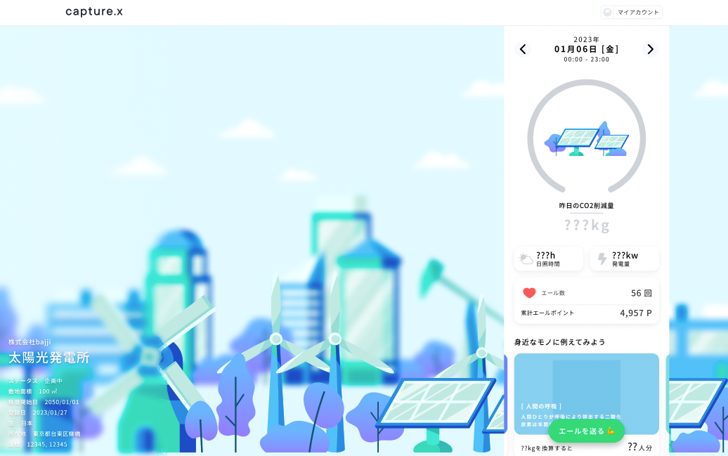 また、現在多くの企業は、環境対策のため様々な活動を進めています。例えば再生可能エネルギーを活用した発電のみで稼働する工場などの取り組みがあります。しかしながら、一般消費者には企業の活動はあまり知られていません。capture.xは、そうした企業の取り組みや自社の活動を継続的にアピールする場となっています。より多くの消費者が企業のファンとなり、企業の活動に注目することが、環境対策活動をさらに推し進めていくことに繋がると考えています。