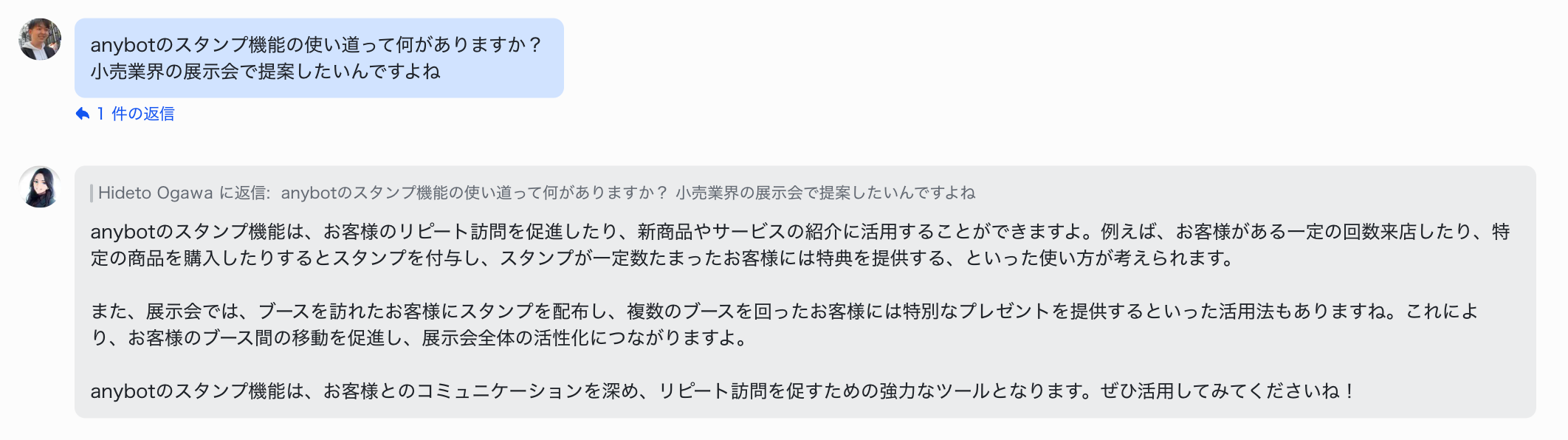 2023年4月にはanybot for ChatGPTをリリースし、ChatGPTをanybotに組み込むことにより、飛躍的に機能が向上しました。お客様との結びつきを強化し、リピート促進やロイヤリティ向上、業務効率の改善、人手不足対策など、お客様の課題解決に貢献しています。