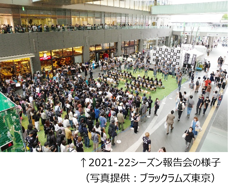 「二子玉川ライズ」では、同じ世田谷区をホームタウンとし、チームビジョン「Be a Movement.」のもと「ラグビーを通じ、『会社』『地域社会』に活力と感動を与えるチームであること」をミッションに積極的な地域社会への貢献を続けている「リコーブラックラムズ東京」と2021年12月にオフィシャルパートナー契約を締結し、2022年に発足した新リーグへの挑戦を応援してまいりました。