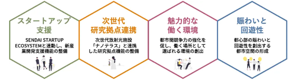 また、仙台市は、東日本大震災の復興が一巡した昨今、東北を牽引する都市として成長することを目的に令和2年4月より「せんだい都心再構築プロジェクト」を開始しています。並行して、仙台市はこれまで創業支援事業の支援対象者数において全国の自治体で6位に位置(※1)するほどスタートアップ支援強化に取り組み、地域経済の活性化をめざしてきました。