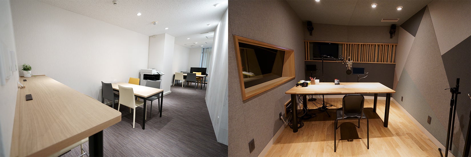 MA-4スタジオは、1クライアント様専用のフロア構造になっているため、クライアント様やアーティスト様にリラックスした空間を提供いたします。ナレーションブースでは最大4名での収録が可能です。