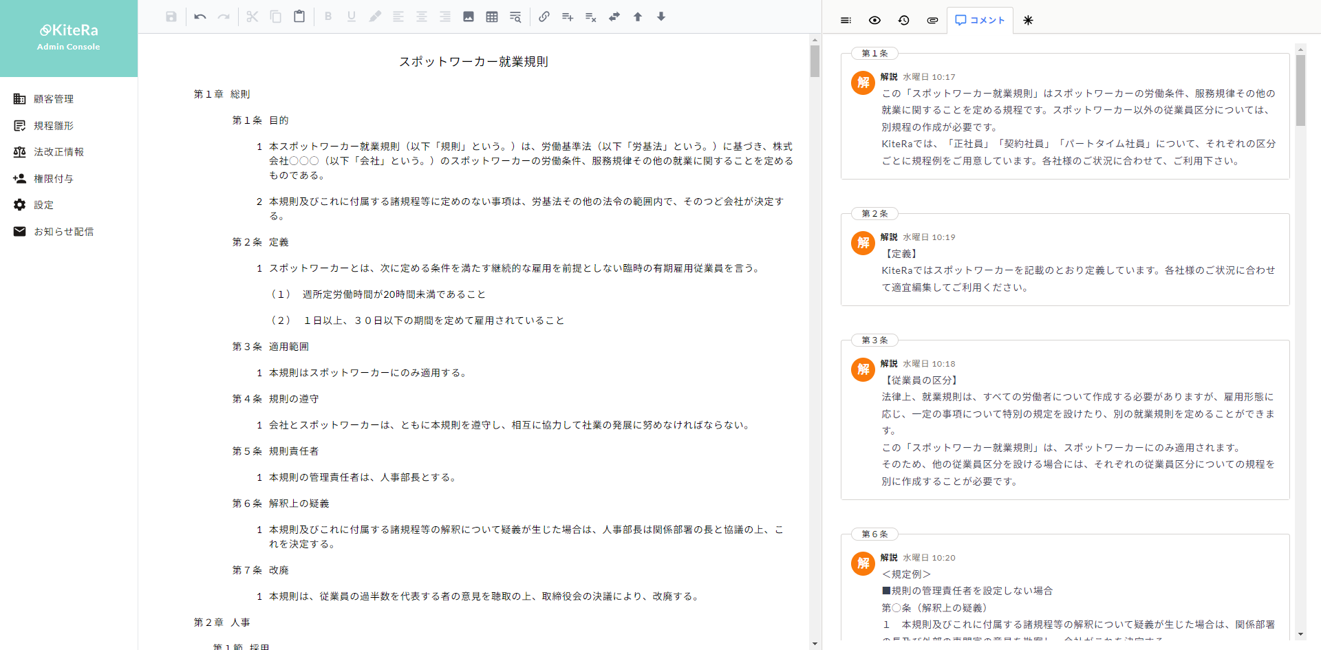 1 スポットワーカー就業規則の策定から既存規程への反映までKiteRa上で完結
