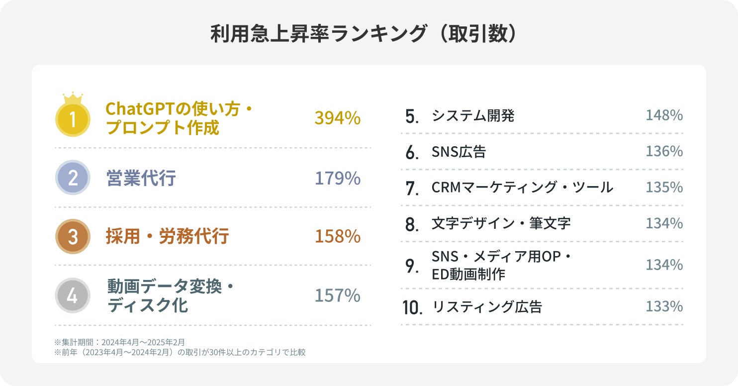 AIカテゴリが前年対比394%の成長、ビジネス代行サービスの需要も急増