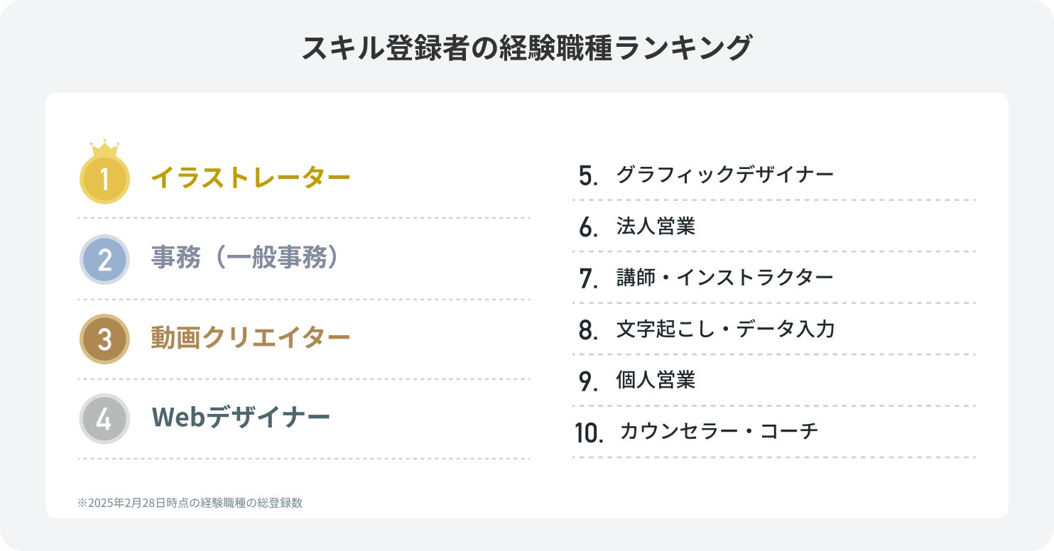 (「スキル登録者経験職種ランキング」のみ2025年2月28日時点での総登録数)