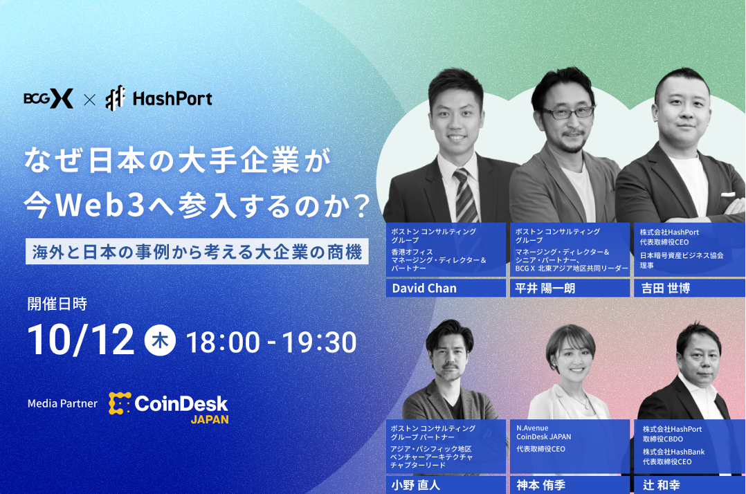 【HashPortとBCG、10月12日にセミナー開催】なぜ⽇本の⼤手企業が今Web3へ参⼊するのか?