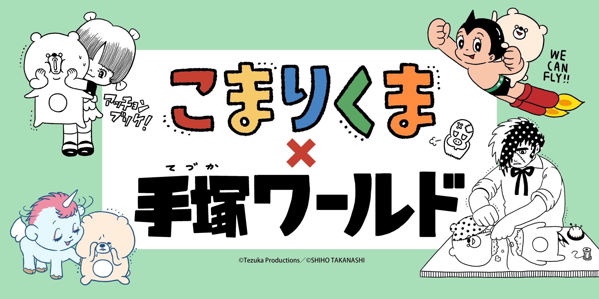 人気イラストレーター 小鳥遊しほデザインによるこまりくまと、名作「ブラック・ジャック」「鉄腕アトム」「ユニコ」などの人気キャラクターが奇跡のコラボ!