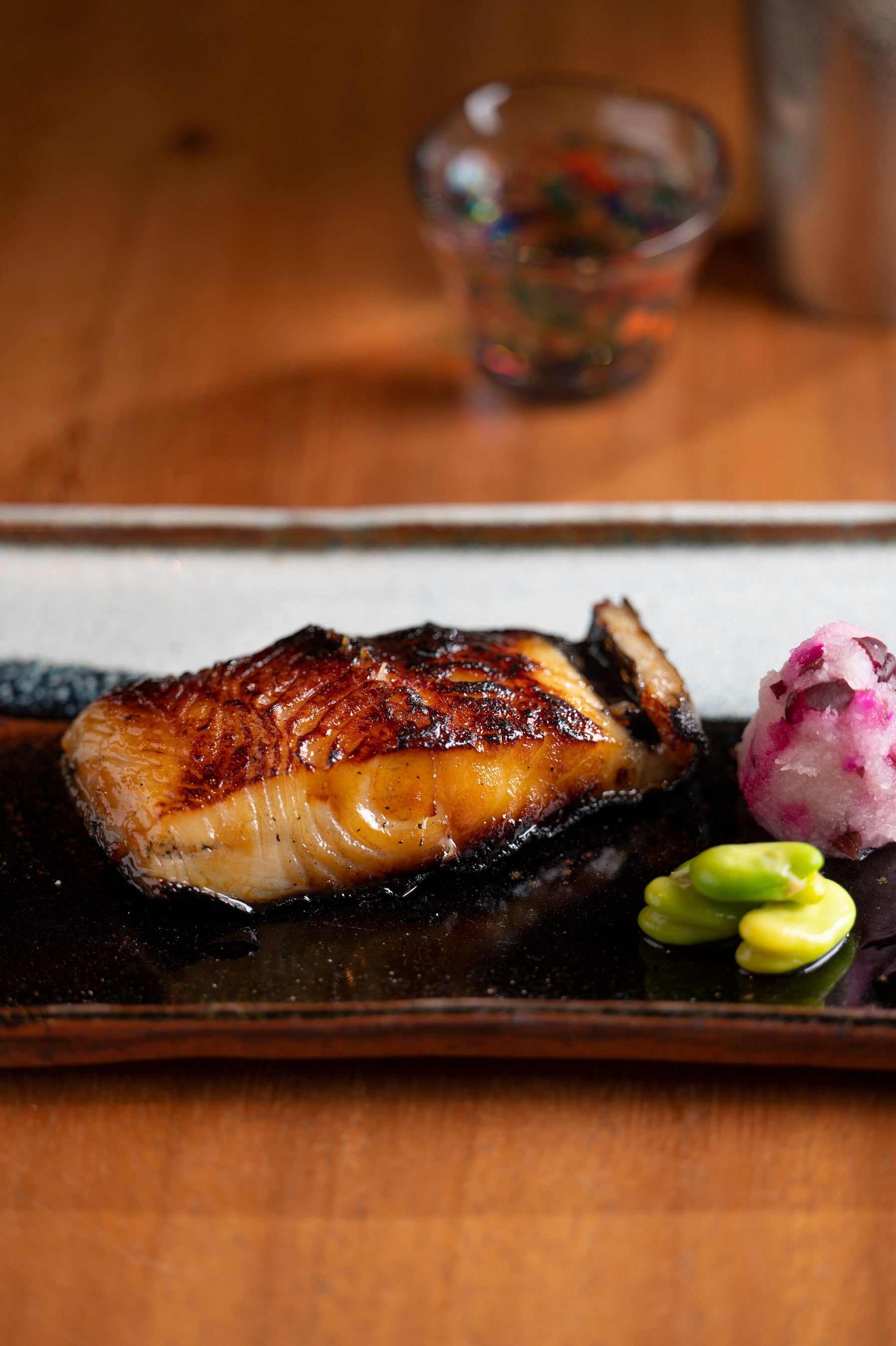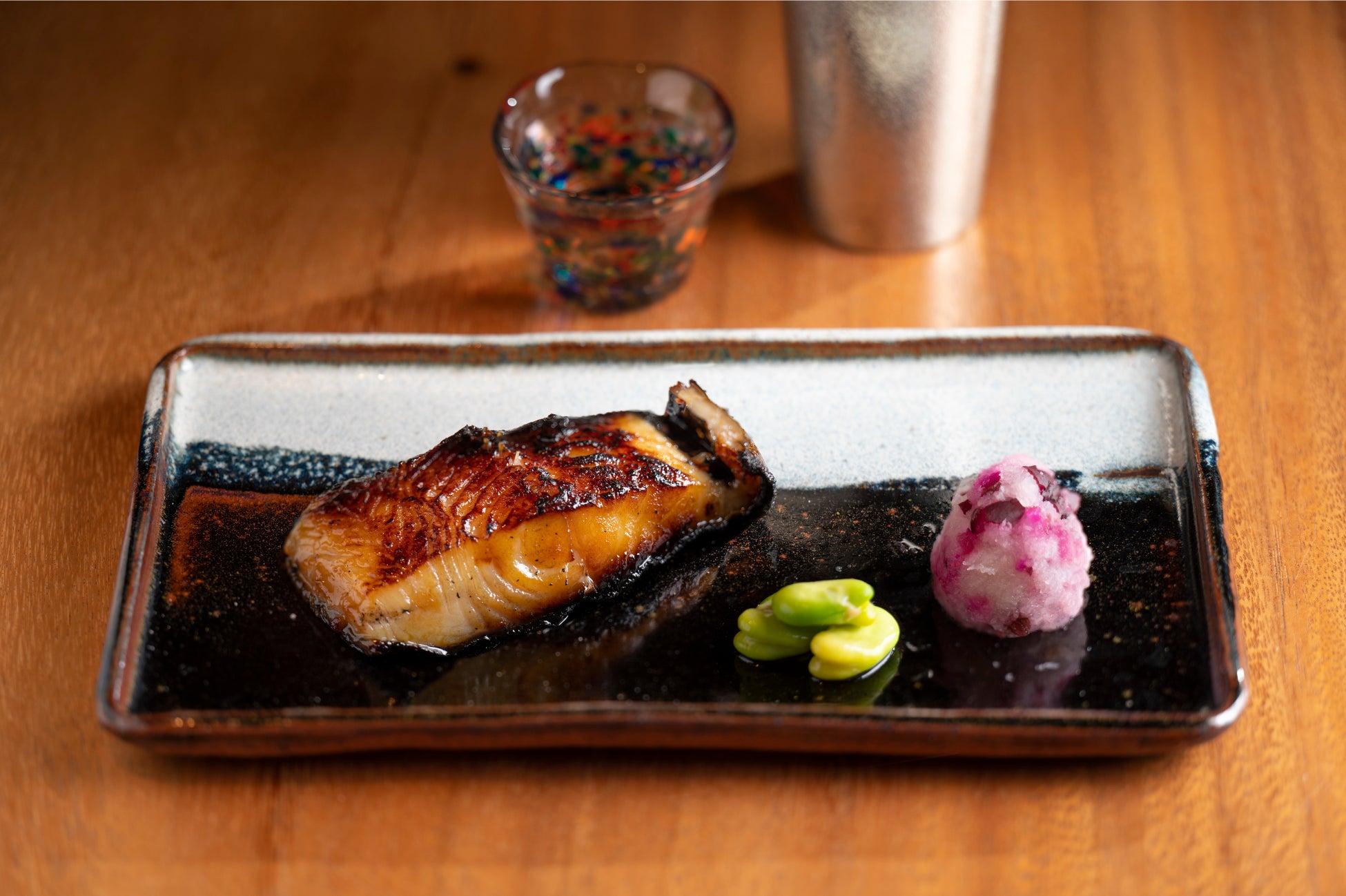 四季折々な食材で織りなすカウンター和食「SHIKAKU」では、アラスカ産銀だらの西京焼きを提供します。炭火で香ばしく焼き上げられた、脂のり抜群のアラスカ産銀だらのパリッとした皮目としっとりジューシーな身のバランスが絶妙の一品です。