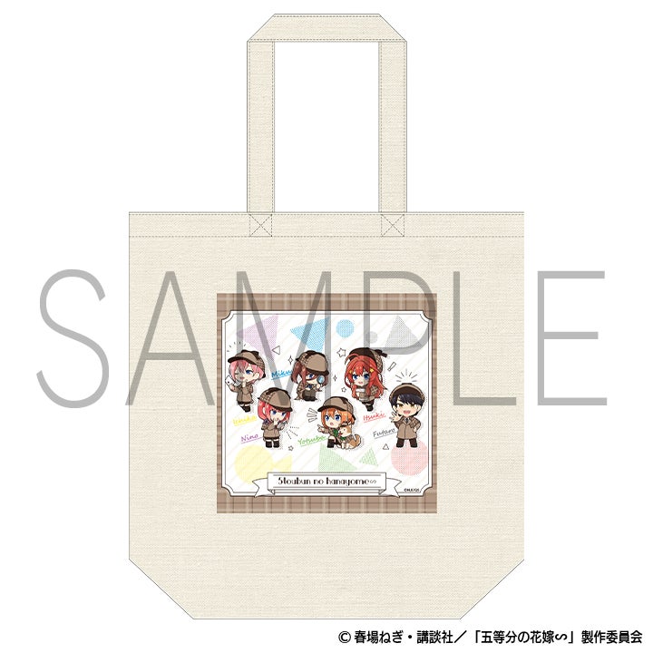 謎解きツアーに合わせ、謎を解き明かすためのアイテムを手にした探偵スタイルに身を包んだ中野家の五つ子&風太郎の描き下ろしイラストを使用した新作グッズが発売されます。