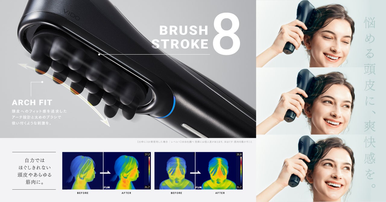 現代人の生活様式では目を酷使したり同じ姿勢が続くことが多く、頭皮や頭筋がこわばると頭がモヤモヤと重たく感じることがあります。「VIDO」は、薄く固まりやすい頭皮・頭筋を “ほぐす” ことに焦点を当てて徹底研究された最先端*横振動モーションを採用。適度に圧をかけながら、頭皮だけではなくその下の筋膜や筋肉もとらえて丸ごと高速振動で動かします。まるでマッサージガンのように筋肉まで深く刺激し、ヘッドスパのように心地よく頭皮をときほぐす。2つの理論から導きだされた新しい刺激で、当てた瞬間から頭皮・頭筋に解放感を味わえる体感を実現しました。