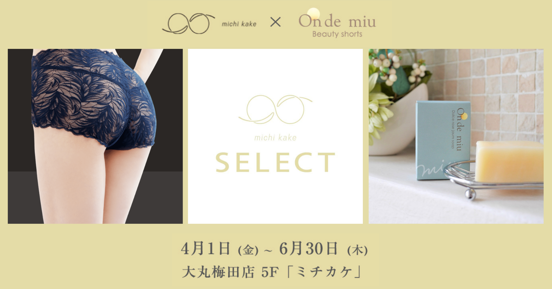 日(木)まで、大丸梅田店5階で開催されるイベント「ミチカケ セレクト」にフェムテックブランド「On de miu」を出店いたします。美温活ショーツ6色と、デリケートゾーン専用石鹸を単品でご購入いただくことができます。