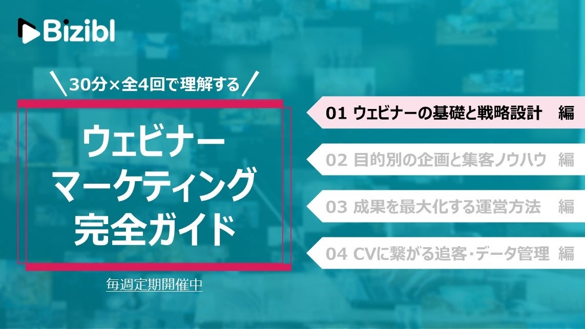 ウェビナー施策について体系的に学べるウェビナー企画「ウェビナーマーケティング完全ガイド」。第1弾では「ウェビナーの基礎と戦略設計」としてウェビナーの基礎と正しい戦略の設計を解説いたします。