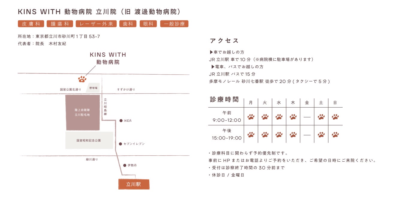 KINS WITH動物病院 立川院(旧 渡邊動物病院)概要