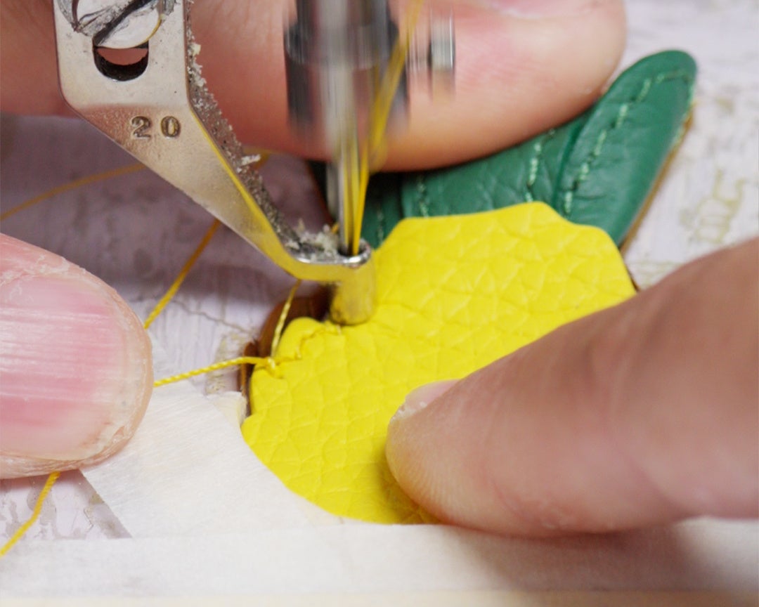 新作フルーツチャームを実際にご覧いただけるのは、本ポップアップが初めて。細密な刺繍、レザーの編み込みや重ね貼り、クロスハッチの型押しといった新たな技術を随所に採用し、立体感と奥行きのあるフォルムを実現しています。写真では伝えきれない緻密なディテールと、職人のこだわりが息づく繊細な仕上がりを、ぜひお楽しみください。