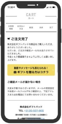 注文完了画面、または注文完了メールからカスタマイズ画面にアクセス。