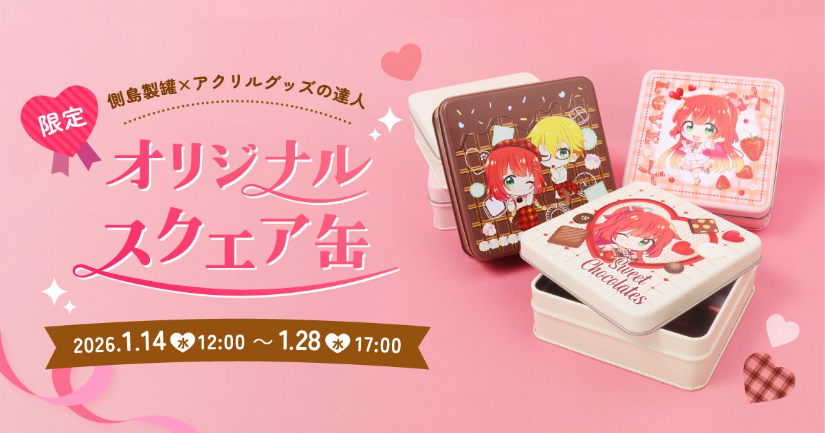 企業・飲食店向けの販促支援及び、グッズ・ノベルティ製作事業を展開する株式会社BeBlock(本社:愛知県名古屋市、代表:松村祐輔)は、 老舗製缶メーカー側島製罐株式会社(本社:愛知県海部郡大治町、代表取締役:石川貴也)と協力し、オリジナルデザインが可能な「オリジナル スクエア缶」をリリース。2026年1月14日〜1月28日の期間限定で「アクリルグッズの達人」(https://acryltatsujin.com)にて販売します。