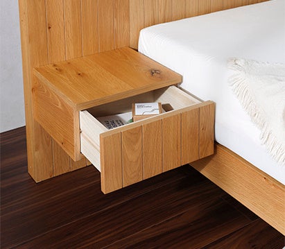 人気の節有オーク材を使用したナチュラルなイメージのベッドフレーム。ベッドサイドパネルを合わせることでホテルライクなレイアウトも可能です。