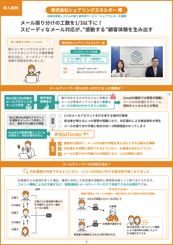 メール共有・管理システム「メールディーラー」、問い合わせやメール対応の課題別事例集を公開