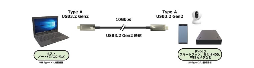 DisplayPort Alternate Mode / Power Delivery 60W / USB 3.2 Gen2 に対応した USB-C長尺光ファイバケーブル