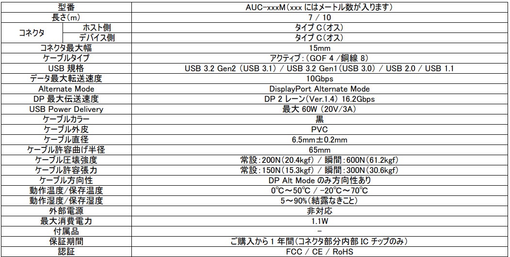 - 本製品はアクティブケーブル(IC内蔵型ケーブル)の為、接続機器によっては相性問題が発生する可能性があります。デモ機による事前検証を推奨しております。