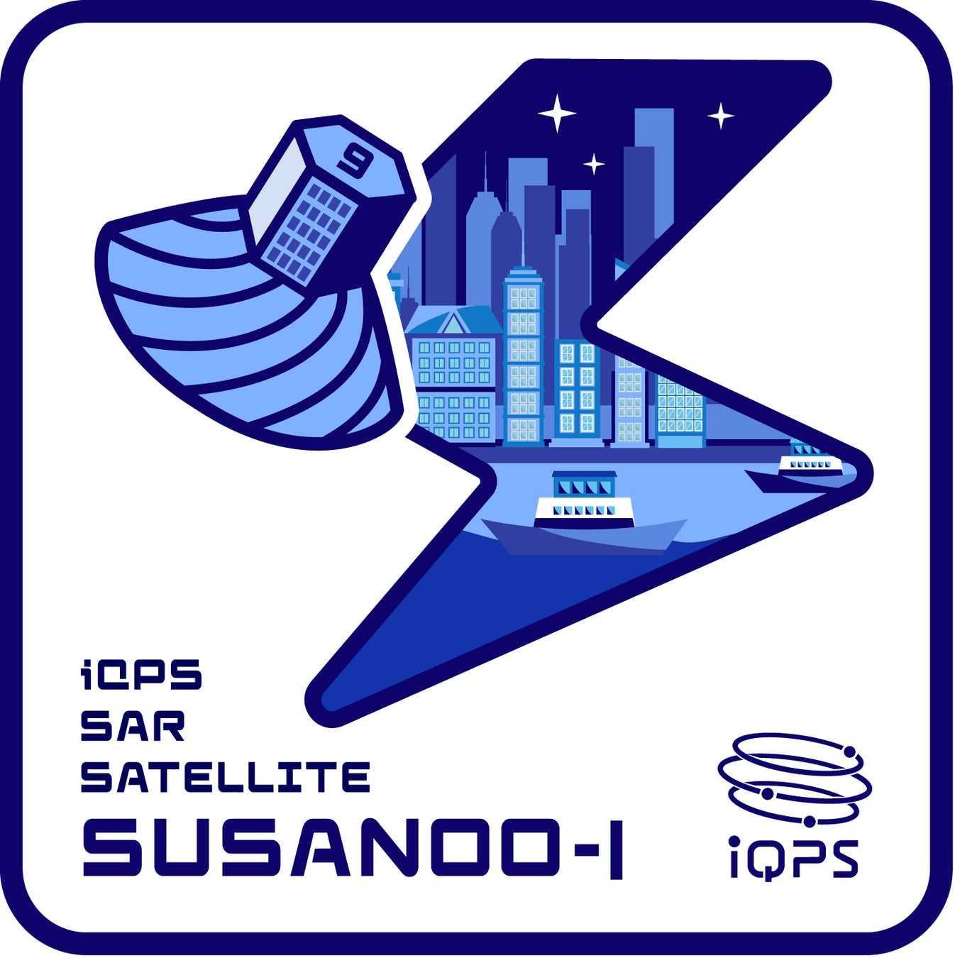 ミッションマーク:スサノオのマークはQPS研究所のカンパニーカラーであるブルーを基調とし、愛称のスサノオをイメージする雷、そして観測対象となる港や街を表しています。ツクヨミと同じく、傾斜軌道では経済活動が活発な大型都市圏が観測域に多く入ることになります。また、一目でどの衛星のマークか分かるように通算した衛星の数の数字を衛星の底部に入れています。