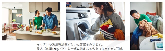 ルームタイプは全11種・24㎡~93㎡のゆったりとした間取りで、一部客室からは横浜ベイブリッジ、大さん橋などのハーバービューや、晴れた日には富士山の眺望を楽しむことも。約半数の客室には、サービスアパートメントならではのキッチンや洗濯乾燥機を完備しています。また、ペットフレンドリーのお部屋*もご用意。シタディーンでは、家族の一員である愛犬とともに、その街での滞在がより快適で楽しいひとときとなるよう、ドッグベッドを始めとしたペット専用アイテムが充実しています。