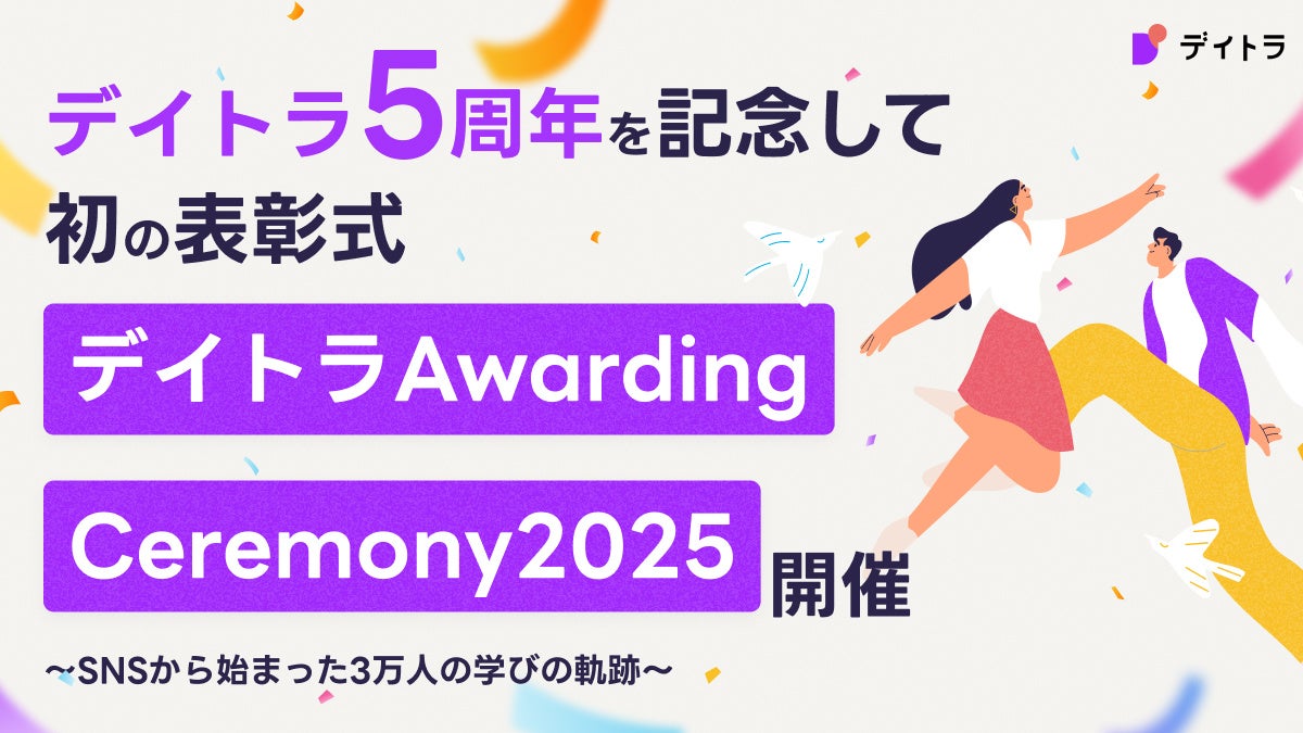 株式会社デイトラ(本社:東京都豊島区、代表取締役:大滝昇平、以下「デイトラ」)は、創業5周年を記念し、初となる受講生表彰式「デイトラ Awarding Ceremony 2025」を2025年4月5日(土)に開催することをお知らせいたします。