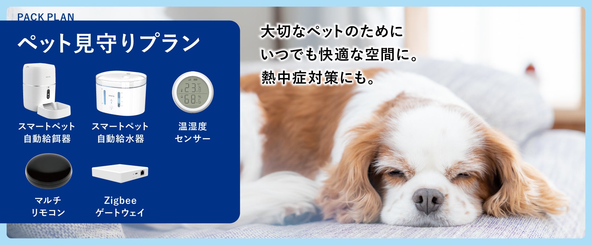 給餌器・給水器に加え、自動でお部屋の温湿度を調整するスマート家電がセットになったお得なプランになります。