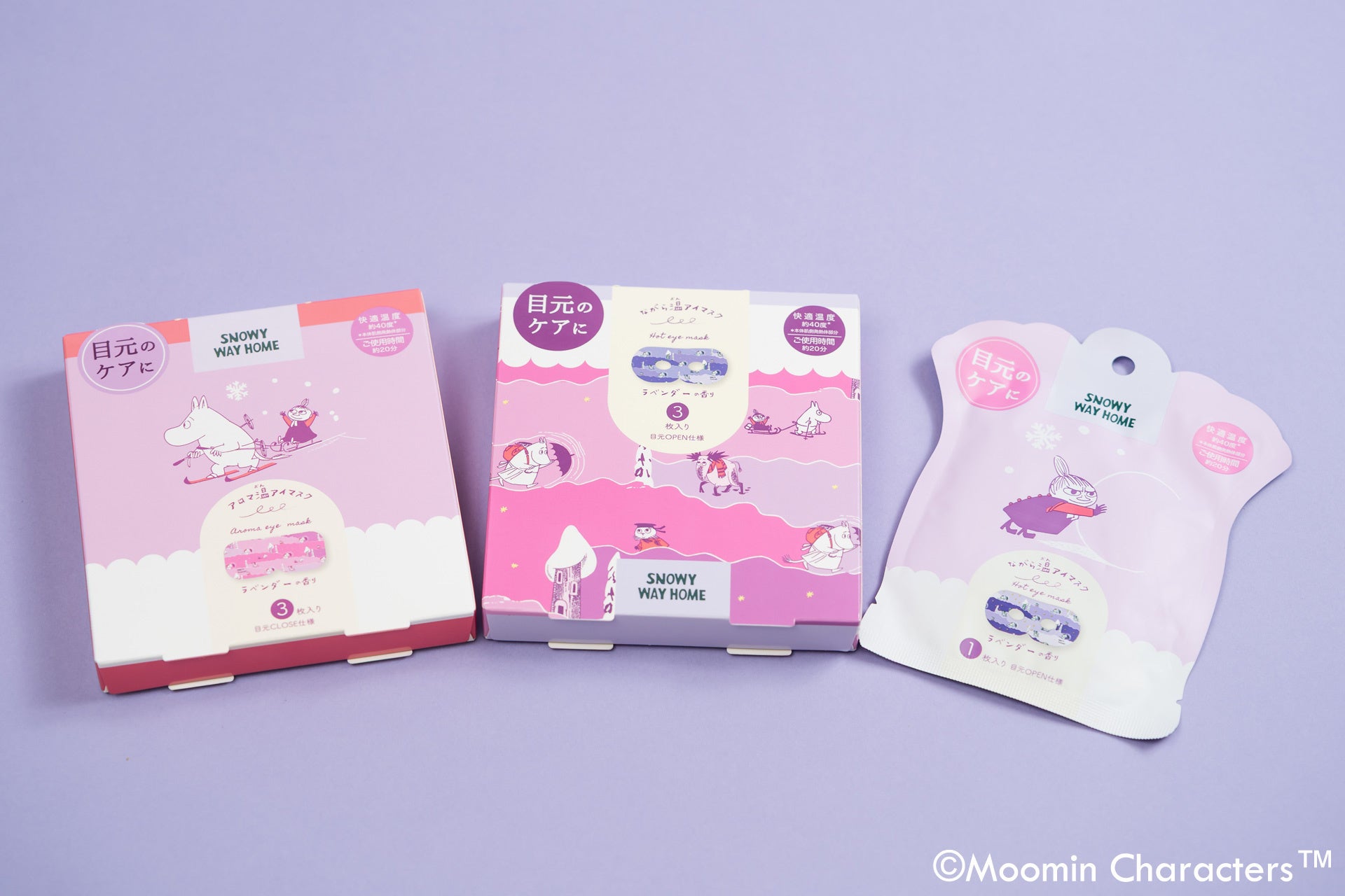 「スノーウィーウェイホーム」のアートがデザインされた、目元をじんわり温めるアイマスクシリーズ。「ながら温アイマスク」は目の部分に穴が空いているので、読書やスマホ操作をしながら使えます。「アロマ温アイマスク」は目を閉じてリラックスしたい時間にぴったりです。いずれも「ラベンダーの香り」付き。