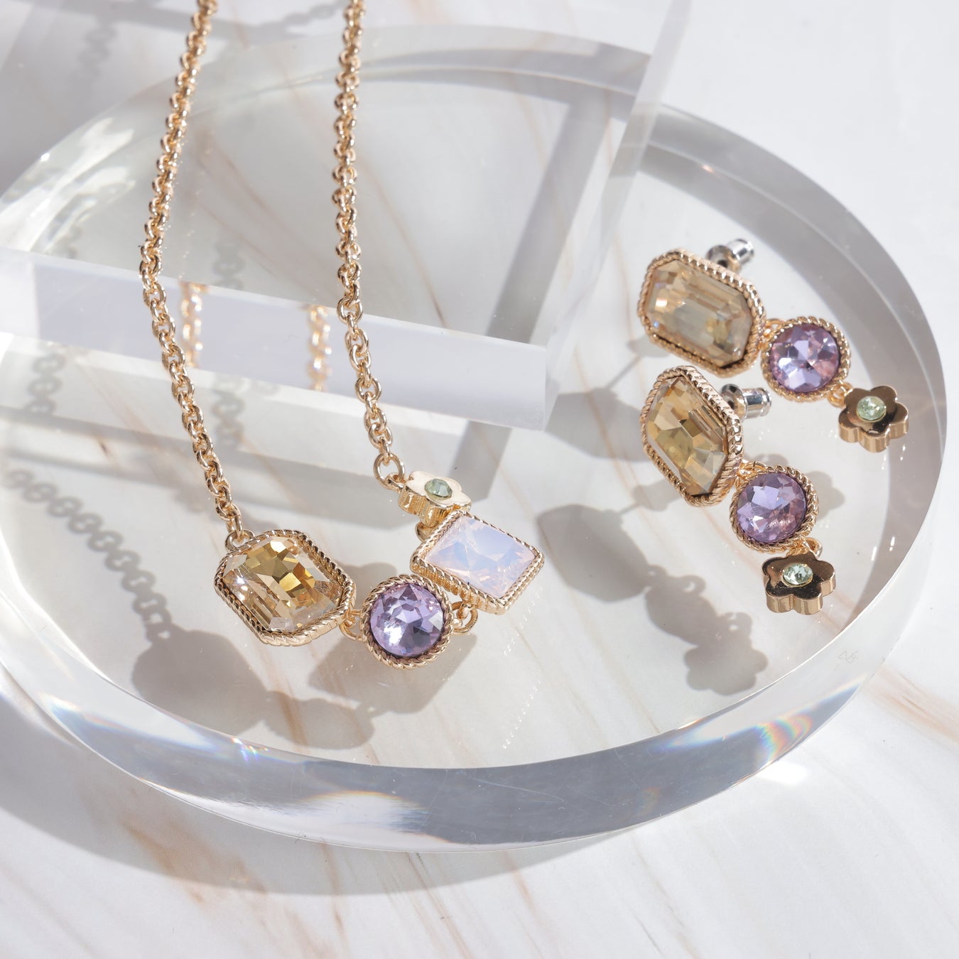 形、カラー共に異なる大ぶりのビジューを使用した目を引くデザイン