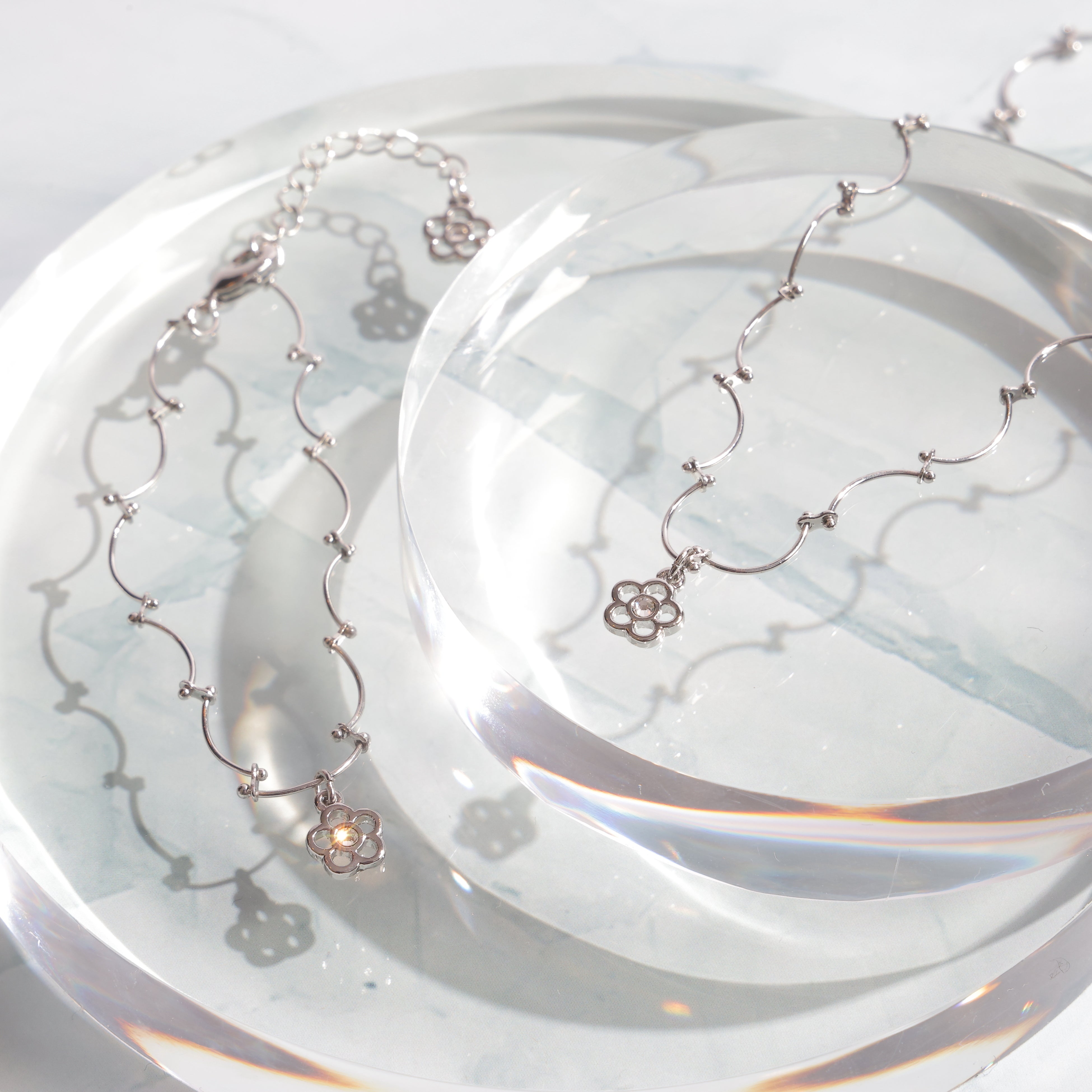 チェーンの軽やかさに合わせた透かしのデイジーがポイントのデザイン