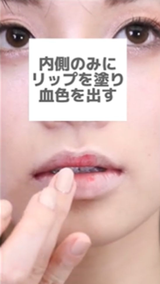 唇の輪郭の色をコンシーラーで消し、中央にリップをオンすることで、じゅわっと